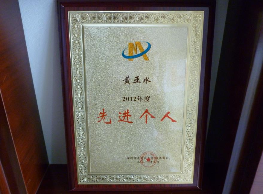 榮獲深圳市龍崗工商聯(lián)2012年度先進個人證書