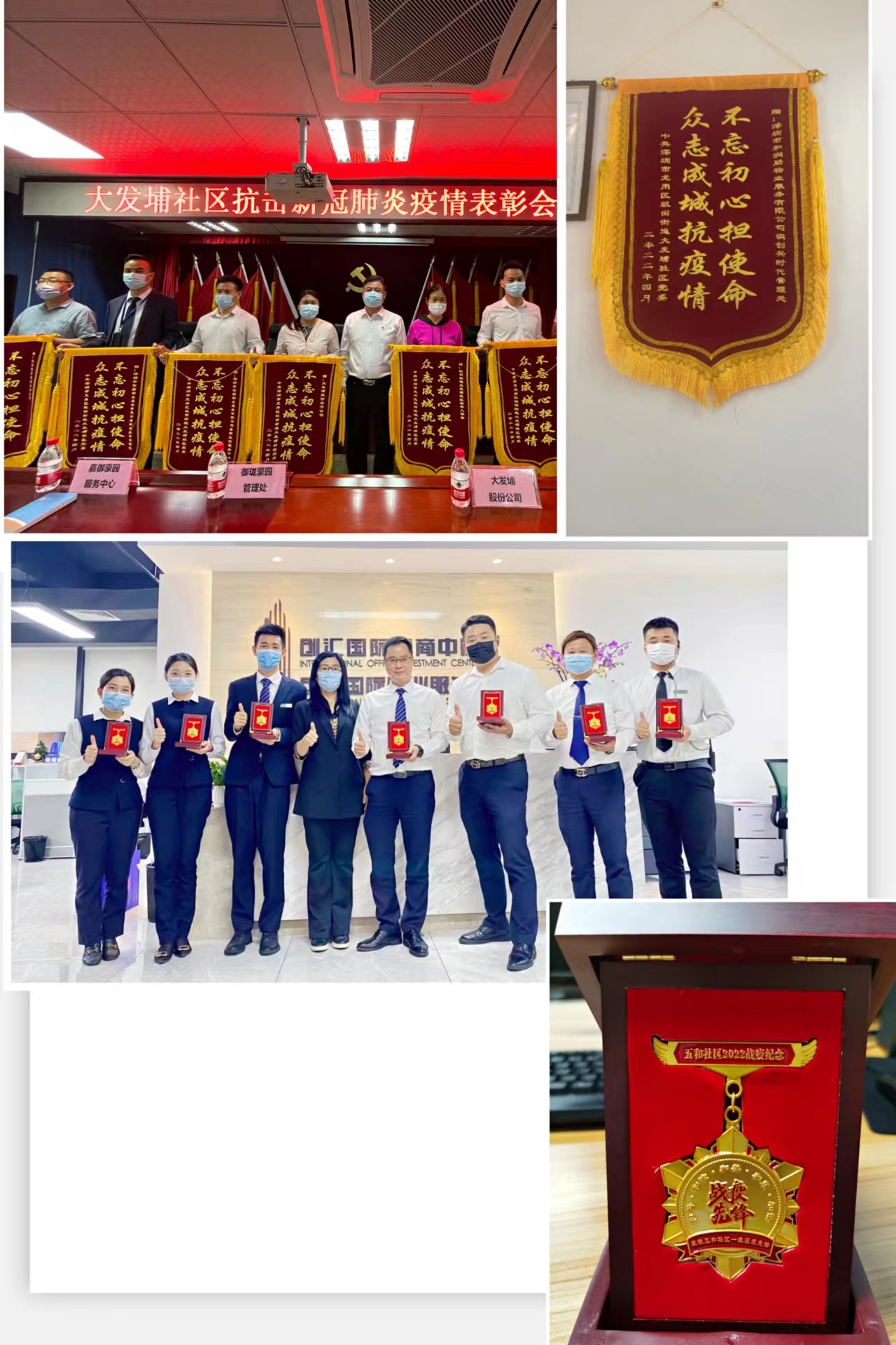 4月19日下午,深圳市和潤居物業(yè)服務(wù)有限公司創(chuàng)匯大廈管理處15名參加抗疫工作的一線員工,也收到坂田街道五和社區(qū)授予的“2022年抗疫先鋒紀(jì)念章”