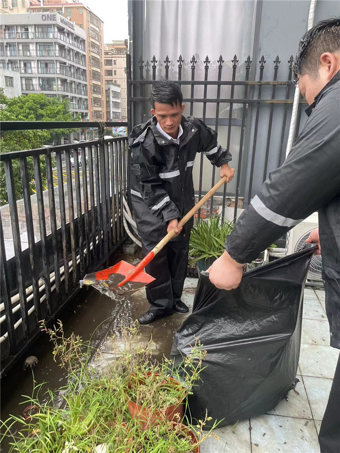 同時(shí),和潤居物業(yè)兩個(gè)管理處,積極開展防汛防臺(tái)準(zhǔn)備和檢查工作,全力落實(shí)各項(xiàng)防訊防臺(tái)風(fēng)措施。針對(duì)天面、地面的排水溝渠開展檢查、管網(wǎng)疏通、雜物淤泥清除,確保排水順暢。檢查電路、配電箱、排水設(shè)備的運(yùn)行情況,修剪園區(qū)樹林花木,防止樹林?jǐn)嗔训袈?。提前備置了充足的防汛沙袋、擋水板等物資,汛情一旦出現(xiàn),搶險(xiǎn)救援組就會(huì)第一時(shí)間調(diào)動(dòng)防汛沙袋對(duì)地庫進(jìn)水口實(shí)施封堵,減少水浸危害。