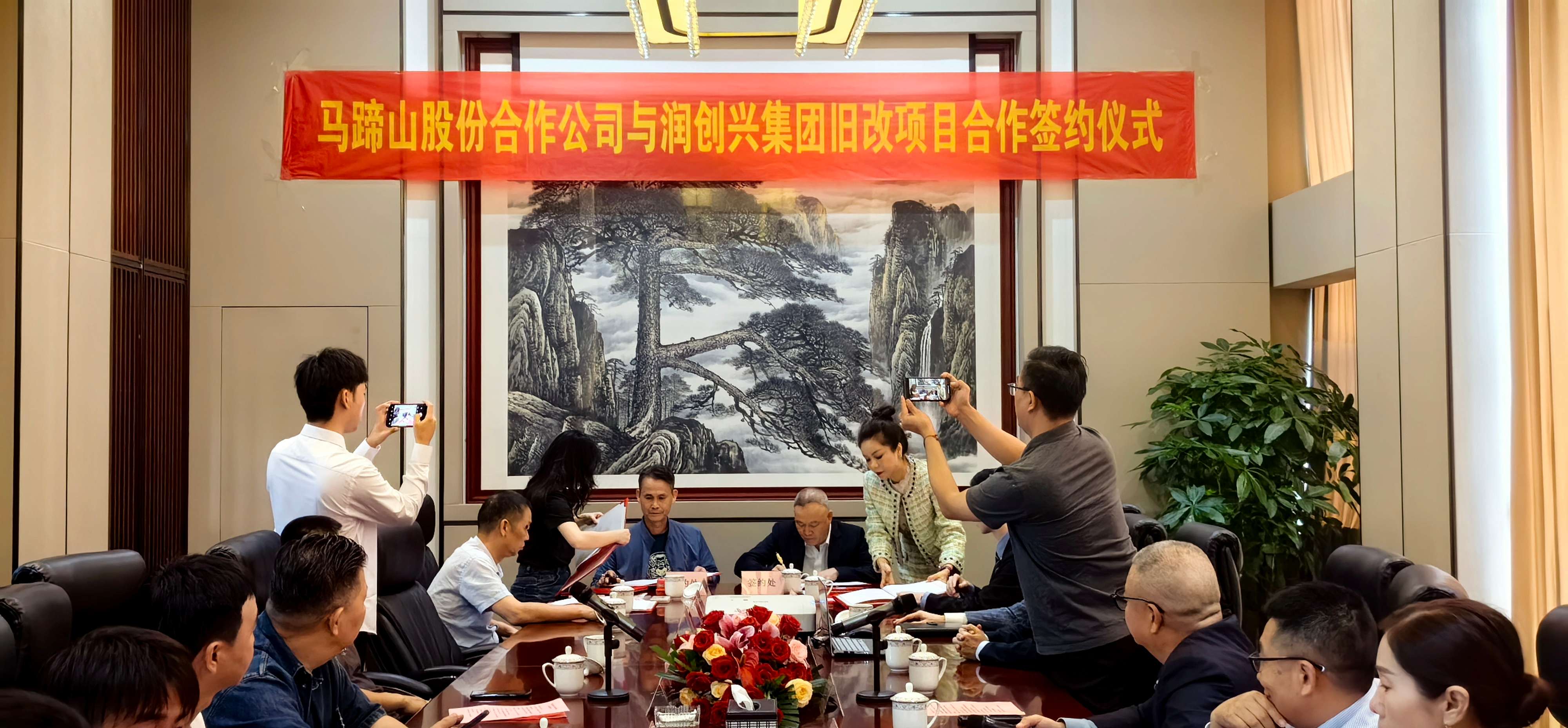 2023年10月20日上午10:00,馬蹄山股份合作公司與潤創(chuàng)興集團(tuán)舊改項目合作簽約儀式,在潤創(chuàng)興集團(tuán)總部11樓會議室舉行。潤創(chuàng)興集團(tuán)黃亞水董事長與馬蹄山股份合作公司黃志尚董事長,共同簽署了《馬蹄山股份合作公司與潤創(chuàng)興集團(tuán)舊改項目合作協(xié)議書》,標(biāo)志著潤創(chuàng)興集團(tuán)與馬蹄山股份合作公司的合作協(xié)議項目正式進(jìn)入實施階段。