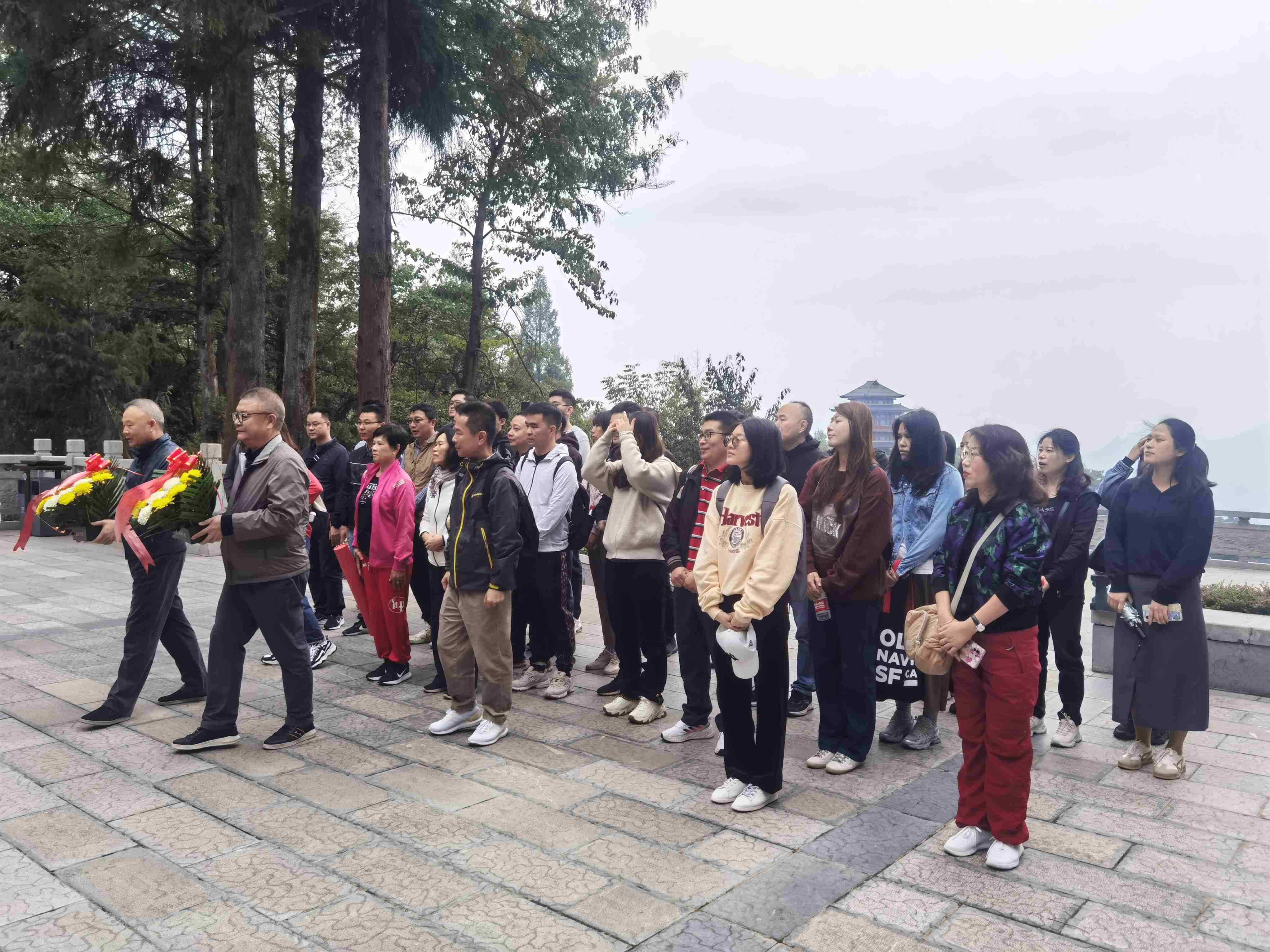 天子山因明初土家族領(lǐng)袖向大坤自號(hào)“向王天子”,而得名。張家界天子山【袁家界】威武神奇的“神兵聚會(huì)”、如海市蜃樓的“空中田園”、“后花圓”、令人曠神怡的“迷魂臺(tái)”、舉世無(wú)雙的“天下第一橋”。天子山有2000多處石峰和多處飛瀑流泉,尤以云海、石濤、冬雪、霞日最為壯觀。一行了參觀了賀龍?jiān)獛涖~像、兵器館、賀龍?jiān)獛涥惲叙^等,在賀龍?jiān)獛浤贡?,大家仔?xì)聆聽(tīng)完講解后,黃董事長(zhǎng)帶領(lǐng)全體員工為賀龍?jiān)獛洬I(xiàn)上花籃,并深深三鞠躬,表達(dá)對(duì)賀龍?jiān)獛浀某缇春途拺选?