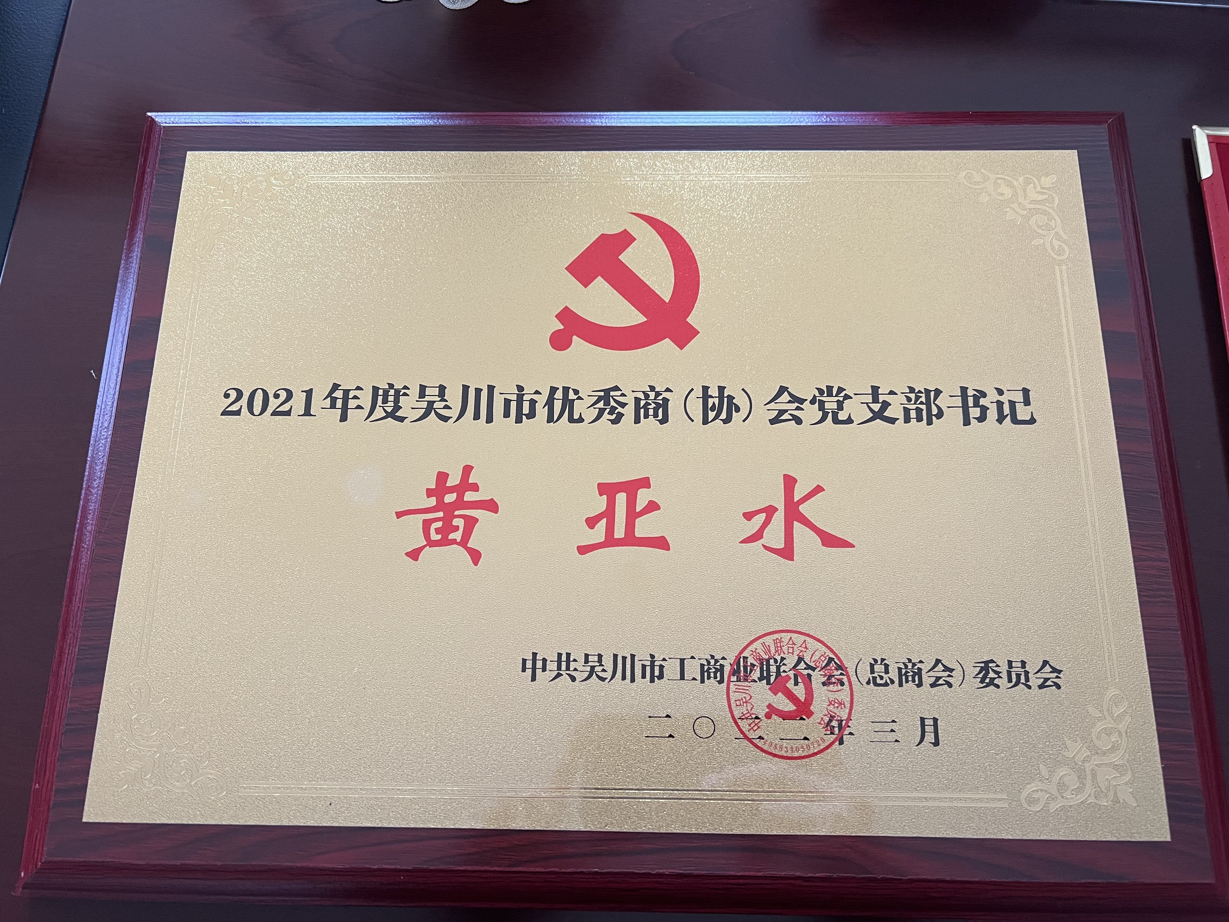 2021年度吳川市優(yōu)秀商會(huì)黨支部書記