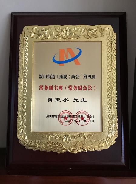 擔(dān)任深圳市龍崗區(qū)坂田街道工商聯(lián)常務(wù)副主席