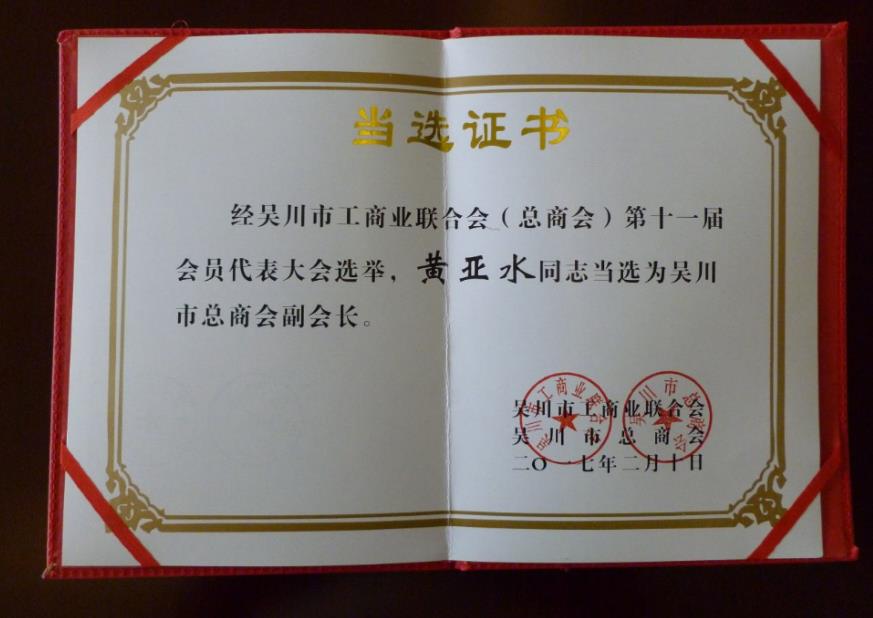 擔(dān)任吳川市總商會(huì)第十一屆 副會(huì)長