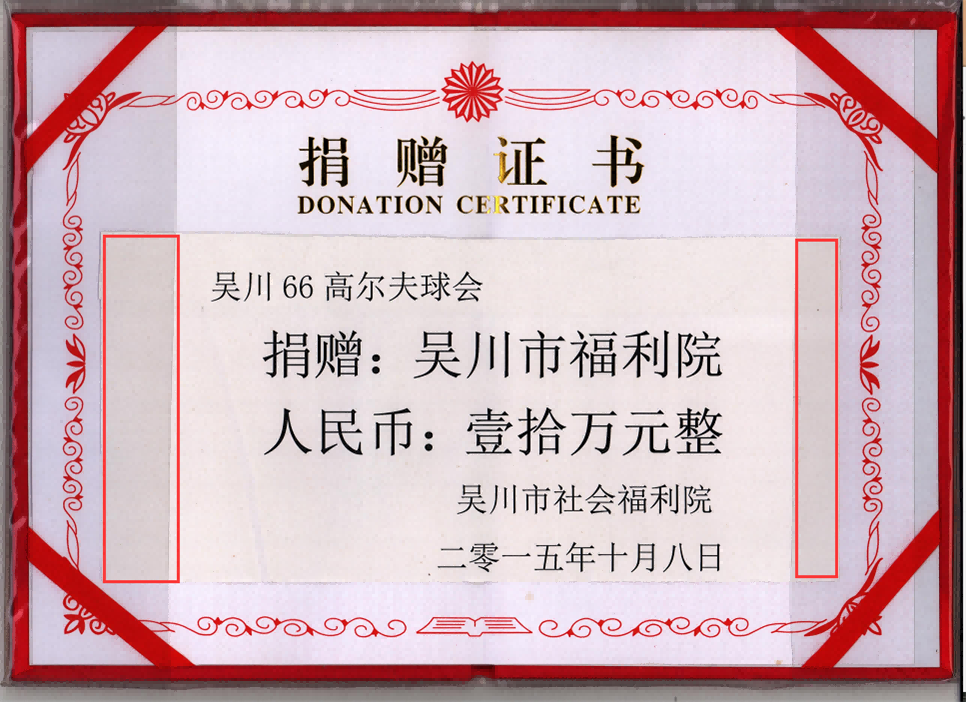 2015年 捐贈(zèng)證書